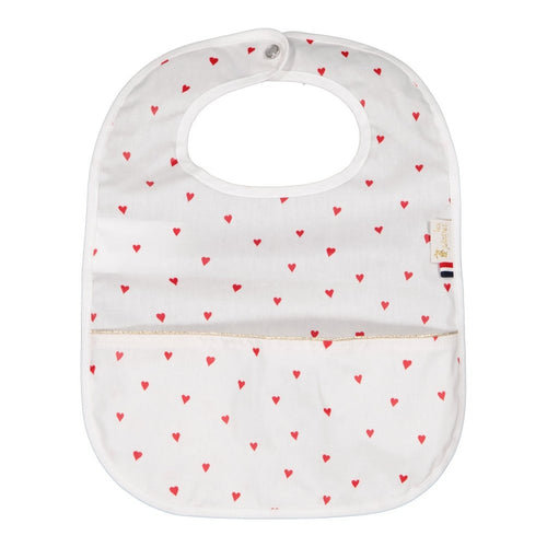 Dit slabbetje is gecoat zodat het makkelijk af te wassen is en heeft een opvangzakje.