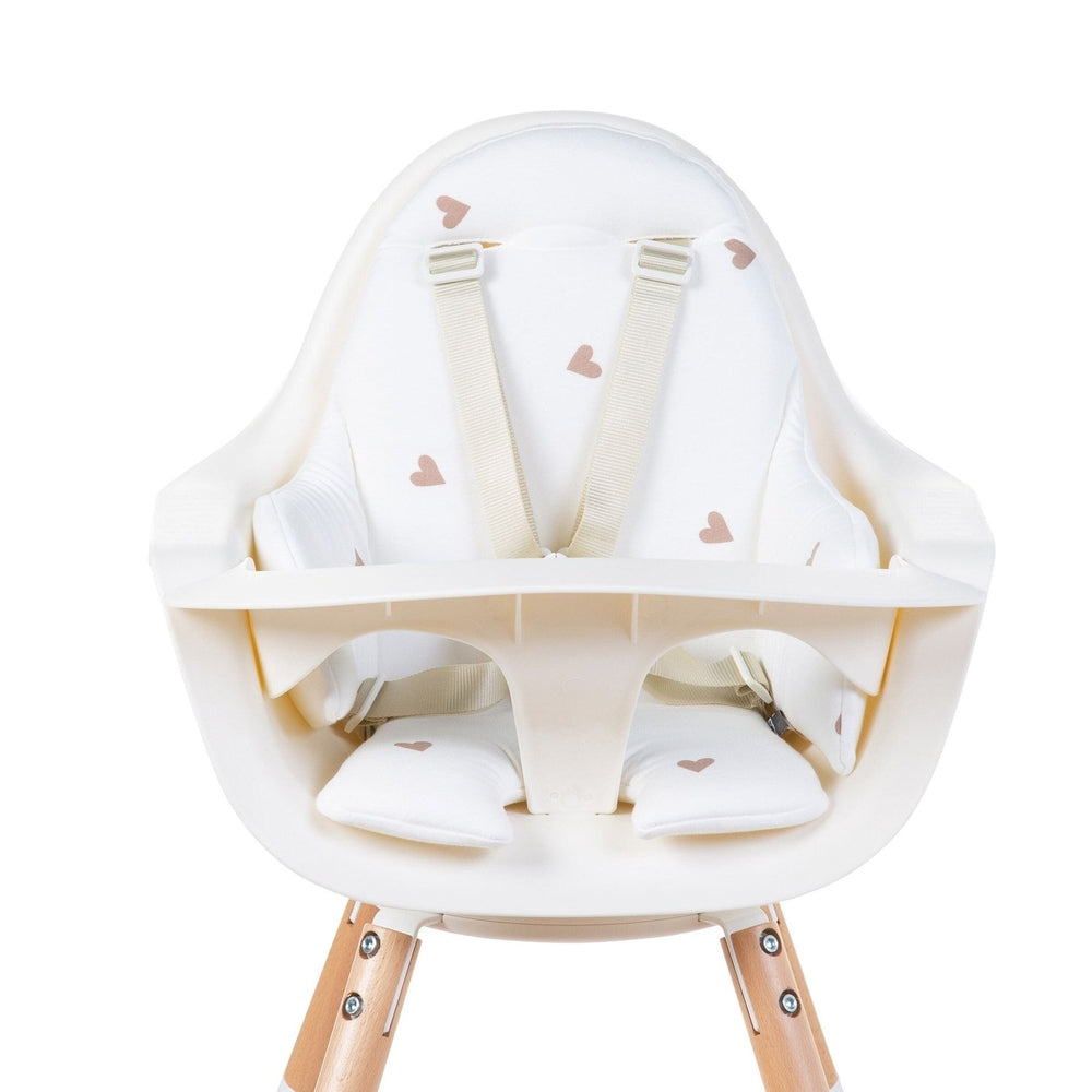 Dit superzacht en gewatteerd stoelkussen Jersey Hearts maakt jouw Evolu 2 of Evolu ONE.80° compleet. Dankzij de kwalitatieve materialen biedt de stoelverkleiner jouw kleintje een optimaal comfort. Het kussen is verkrijgbaar in verschillende trendy kleuren. Het eetstoelkussen heeft openingen om de riempjes van de 5-punt veiligheidsgordel doorheen te steken. De stoelverkleiner is perfect om maat gemaakt voor onze Evolu 2 en Evolu ONE.80° kinderstoelen.