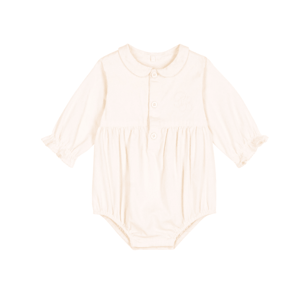 - Deze elegante rug met Claudine-kraag is ideaal voor de eerste dagen van uw baby.