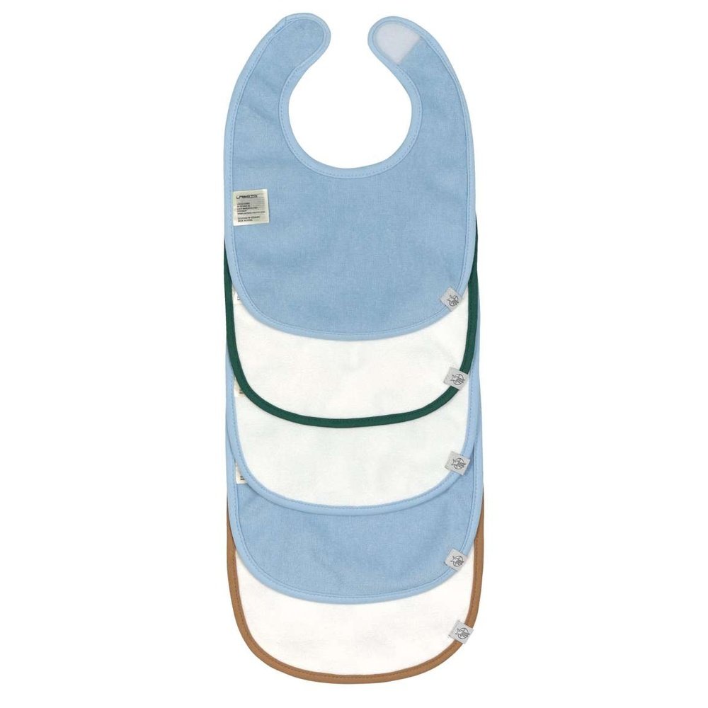 De slabbetjes hebben een hoog gehalte aan biologisch katoen en zijn daarom gemakkelijk te onderhouden en zacht voor de huid.