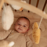 De subtiele, natuurlijke kleuren en lieve figuurtjes trekken de aandacht van je baby en stimuleren op een zachte manier de zintuigen. Dankzij het tijdloze ontwerp past deze mobile perfect in elke babykamer.