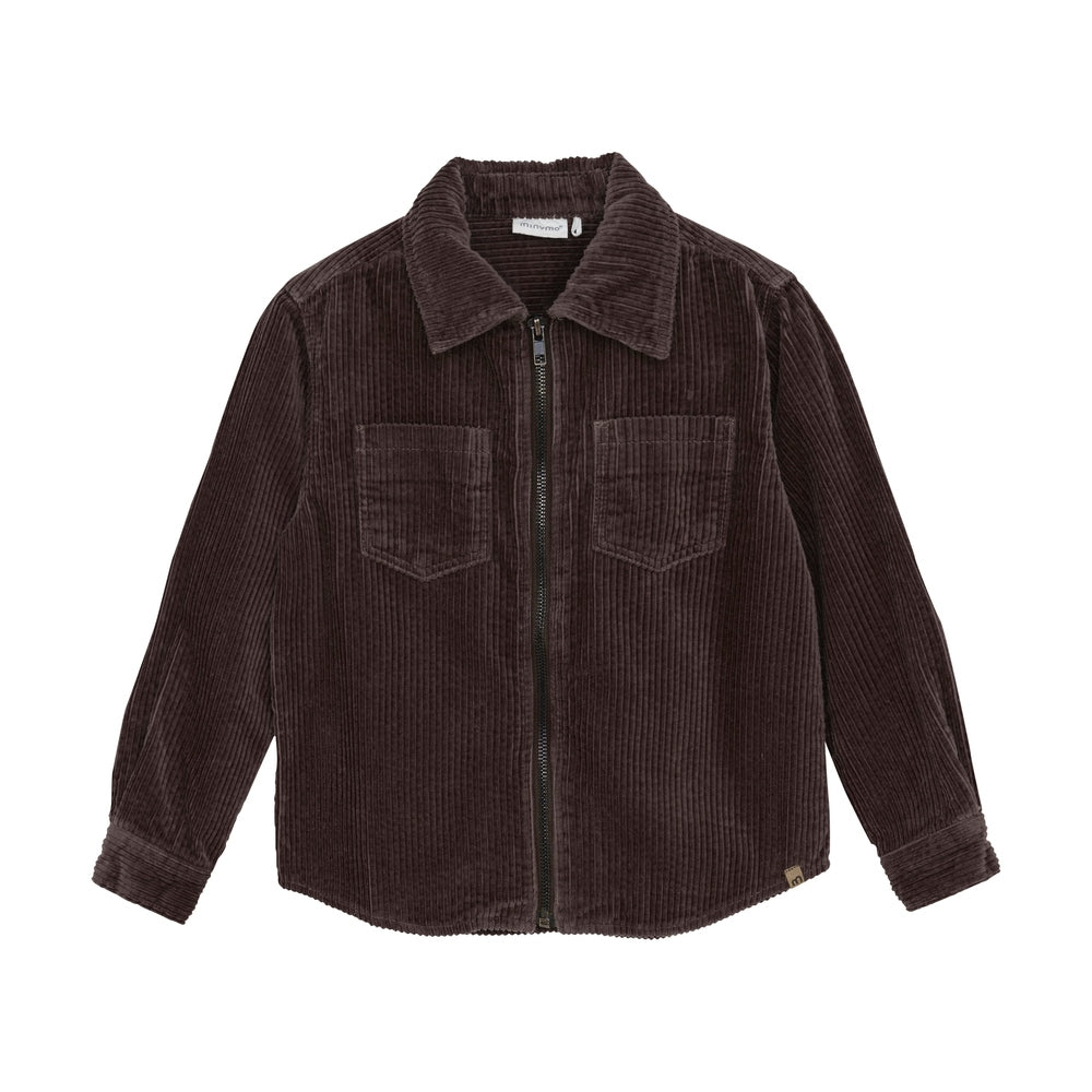Stylish velour shirt from Minymo, made of 100% organic cotton that feels soft on the skin. The shirt features a zipper closure, a classic collar, and two chest pockets, providing a modern and elegant look.