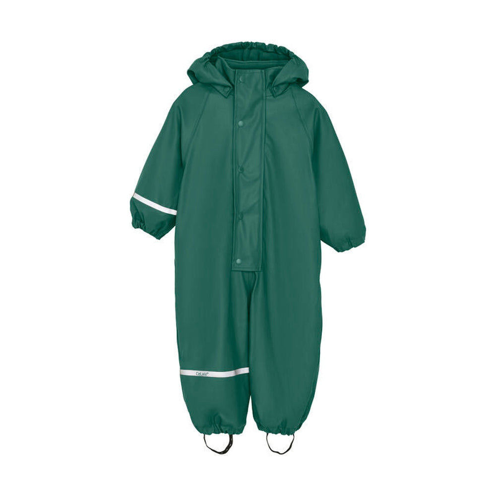 Warm ski suit for children from EN FANT. The material is breathable, windproof, and waterproof, keeping your child dry and warm in rain, snow, and wind. Tested with a water column of 20,000 mm and a breathability of 5,000 g. The ski suit closes with two high-quality zippers at the front, equipped with chin protectors for extra wearing comfort. The suit has a detachable hood and adjustable elastic straps that can be fastened under the boot to keep it in place. Reflective details on the sleeves and along the sides provide extra visibility. The EN FANT logo is on the sleeve. The sleeves are equipped with practical snow guards with wide ribbed fabric and a thumb hole. The sleeve ends are adjustable with Velcro. Inside you will find a name label, a pocket, and a soft teddy lining for extra comfort. The ski suit is made from recycled material and features a BIONIC FINISH® ECO coating. Certified according to GRS (Global Recycled Standard) with more than 50% recycled material (CERES-0366) and OEKO-TEX® STANDARD 100 (Cert. no. 2476-411R DTI).
