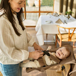 TheNewborn seat is specially designed for babies from 0 to 6 months and supports a weight of up to 9 kg . Thanks to the ergonomic design and the 5-point safety harness keep your baby safe and comfortable. The seat is made of 100% organic cotton canvas, gentle on the skin and environmentally friendly.
