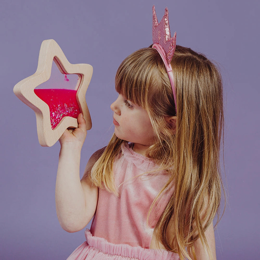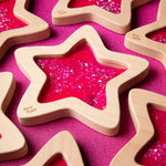 Cette étoile sensorielle de Petit Boum fascine votre enfant dès 6 mois. Cette lune est remplie de liquides colorés, de paillettes et de liquides fluorescents qui brillent dans le noir.