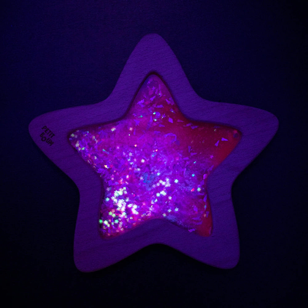 Prix unitaire / parCette étoile sensorielle de Petit Boum fascine votre enfant dès 6 mois. Cette lune est remplie de liquides colorés, de paillettes et de liquides fluorescents qui brillent dans le noir.